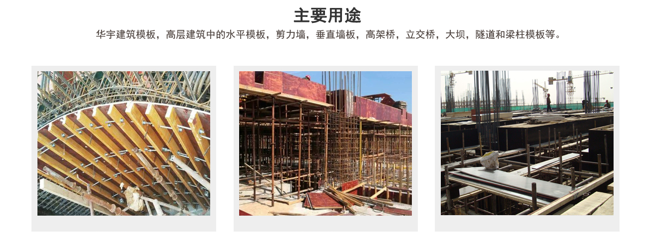 適用范圍:建筑模板非常適用于高層建筑中的水平模板,剪力墻,垂直墻板,高架橋,立交橋,大壩,隧道和梁柱模板等。